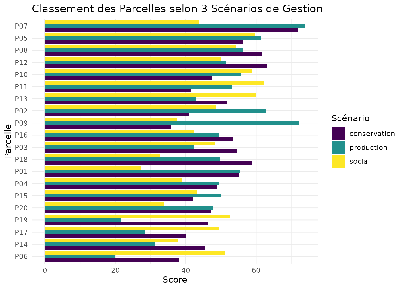 title = "Classement des Parcelles selon 3 Scénarios de Gestion",