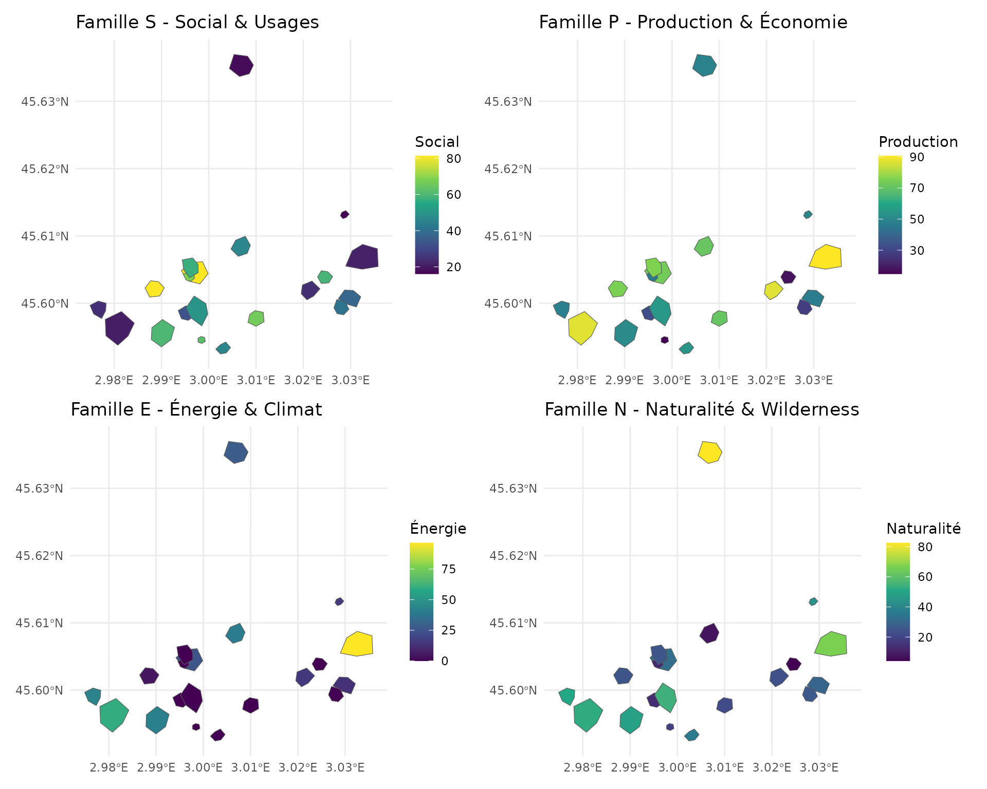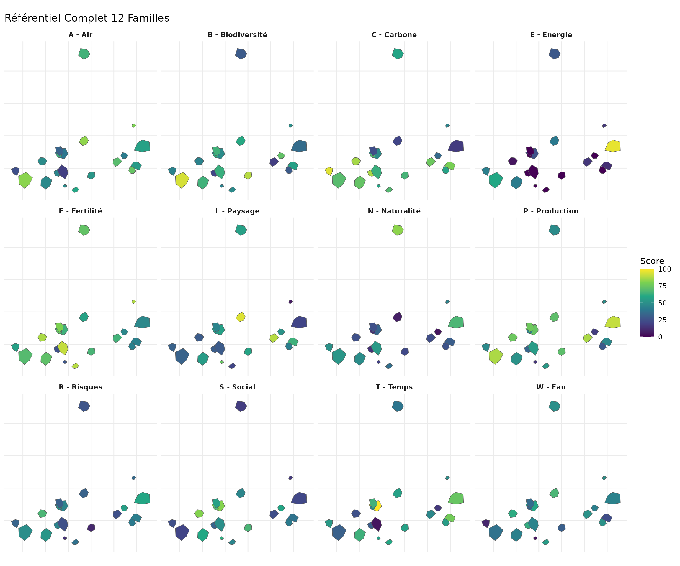 Cette vignette a démontré l’utilisation complète du référentiel 12 familles de nemeton. Le package permet :
